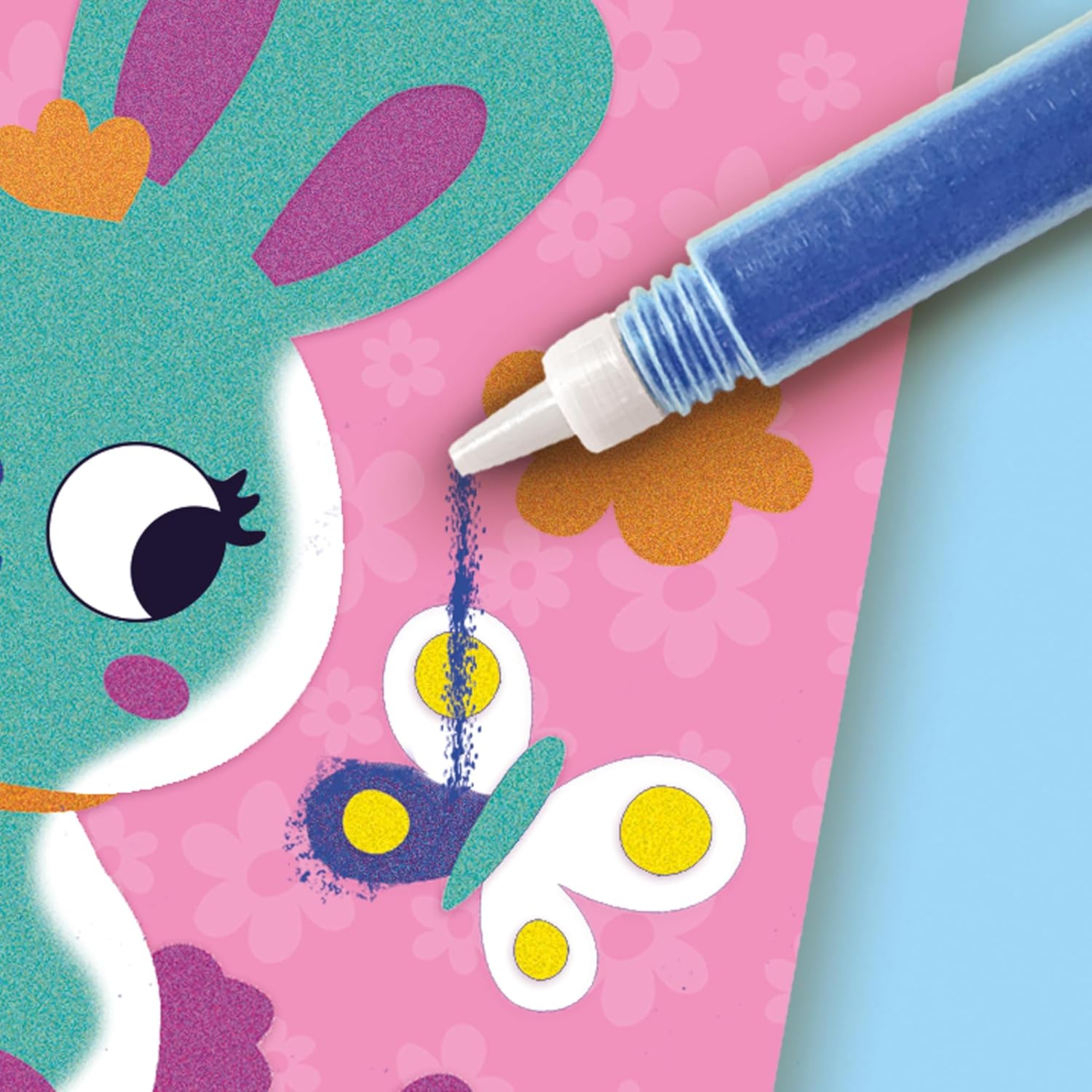 - The sand art cards have a sticker layer for each part, so you can sprinkle each area separately