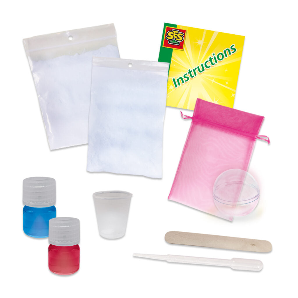 Make your own deliciously scented bath bombs! Follow the instructions and mix the powder mix with the red and blue food coloring. Use the two-part spherical mold to create beautiful, round bath bombs. Store them in the organza bag and turn your bath into a real spa!